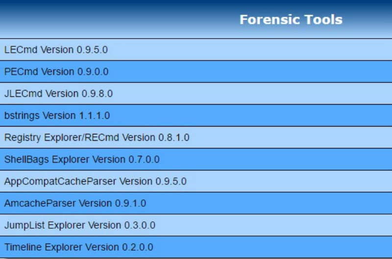 Several Eric Zimmerman’s Tools were updated. Such us: LECmd Version 0.9.5.0; PECmd Version 0.9.0.0; JLECmd Version 0.9.8.0; AppCompatCacheParser Version 0.9.5.0; AmcacheParser Version 0.9.1.0.