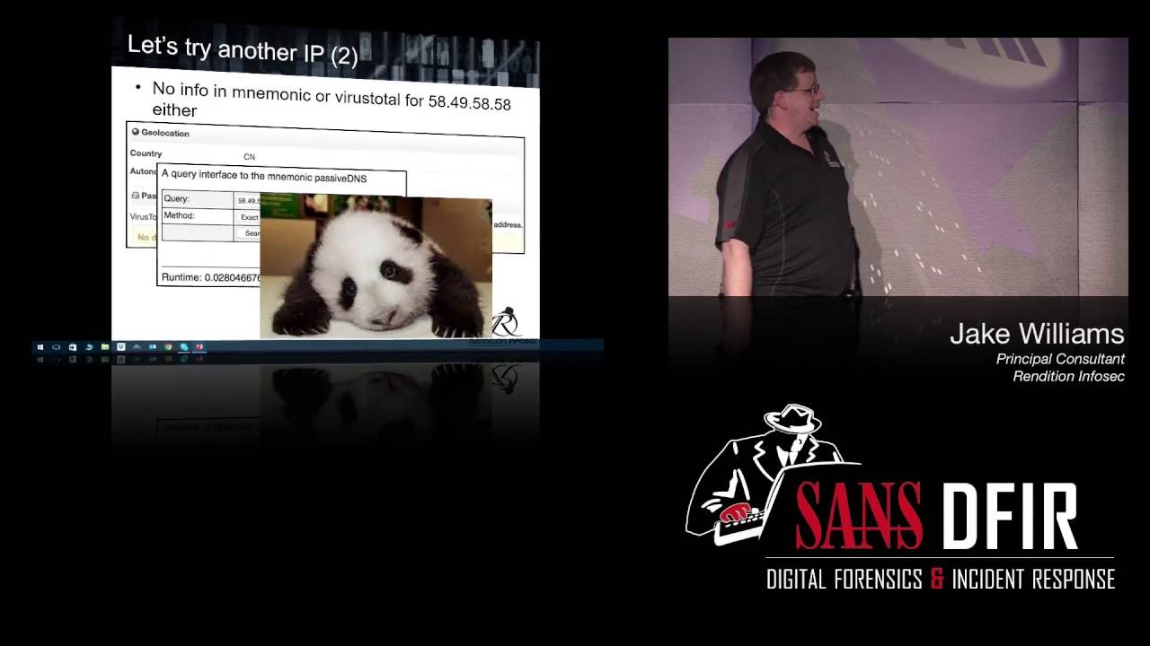 Filmed at the 2016 SANS DFIR Summit in Austin TX in June. Jacob William’s analysis is spot on of the DNC Hack.